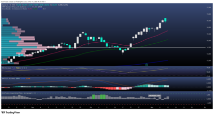 En cuanto a indicadores, el RSI corrige desde 78,4% hasta 73,3%, reflejando una ligera moderación del impulso, mientras el MACD mantiene una señal positiva, lo que sugiere una fase de consolidación lateral antes de un posible nuevo impulso alcista de medio plazo.