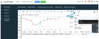 Detalle de cómo buscar la acción de Apple en Just2Trade