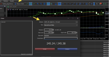 Vamos a ver paso a paso una operación con acciones de Apple desde la plataforma MT5 Global: