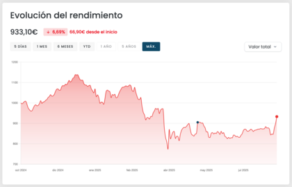 Sí. Puedes crear tantas carteras como quieras (por ejemplo: renta fija, ETF internacionales, portafolio sostenible) y comparar su evolución y rentabilidad dentro del mismo panel.