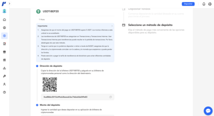 5. Completa los datos solicitados por el método elegido (tarjeta, transferencia, hash de cripto, etc.).