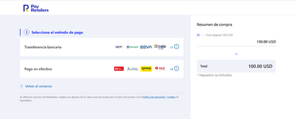 Al elegir esta vía, el sistema genera una orden de pago. Si usas Interbank, por ejemplo, podrías realizar una transferencia simple hacia la cuenta del recaudador. La ventaja de usar tarjetas de débito es la inmediatez; sin embargo, te sugiero revisar si tu banco cobra una comisión por "compras internacionales", ya que esto podría encarecer la operación un 2% o 3% de forma externa al broker.