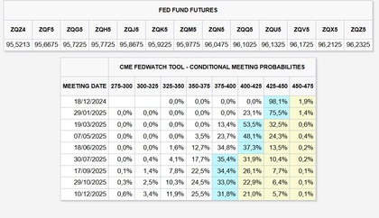 En cualquier caso, muchos inversionistas esperan que el 2025 sea un año con tasas de interés más bajas (entre dos y tres reducciones), situándolas en un rango de entre 3,75% y 4,25%. Esto haría que la financiación para adquirir inmuebles y desarrollar proyectos de inversión sea más accesible, lo cual aumentaría la demanda en el sector y podría impulsar el valor de los activos inmobiliarios. Tipos de interés de la FED en el mercado de futuros