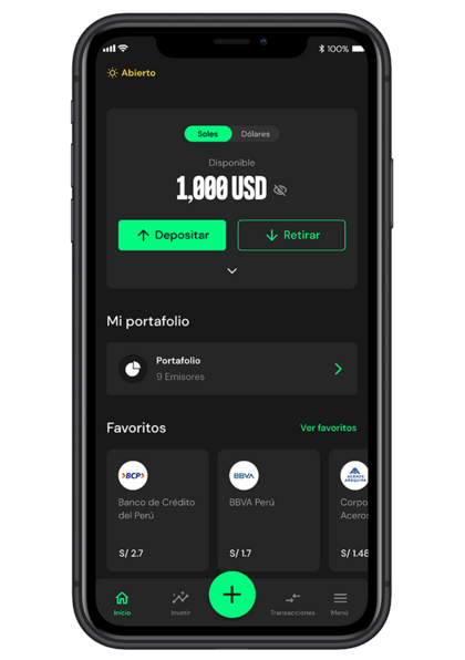 Si tu meta es operar por tu cuenta con bajos costos, comisiones transparentes y acceso digital, la alternativa más directa es Kallpa Securities SAB (según los datos). Puedes abrir una cuenta tanto como persona natural como jurídica. Su alianza con Trii potencia una experiencia 100 % digital, ágil y accesible para invertir en la Bolsa de Valores de Lima, ideal para inversionistas individuales y empresas que buscan autogestión con tarifas claras y competitivas (además de dar acceso al nuevo ETF del Bono Soberano de Perú).