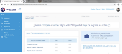 Grupo Coril: dispone de una plataforma web funcional completa. Desde ahí no solo puedes hacer consultas de portafolio, sino colocar órdenes en el mercado.