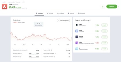 Para inversores más avanzados. Puedes operar AVAX sin tenerlo directamente, especulando al alza o a la baja a través de futuros y opciones.